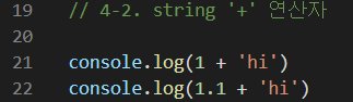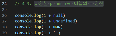 null 과 빈 문자열은 0, undefined와 NaN은 + 연산을 할 수 없다.